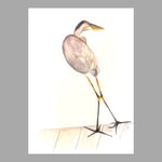 Heron in Longboat, fine art watercolor bird painting