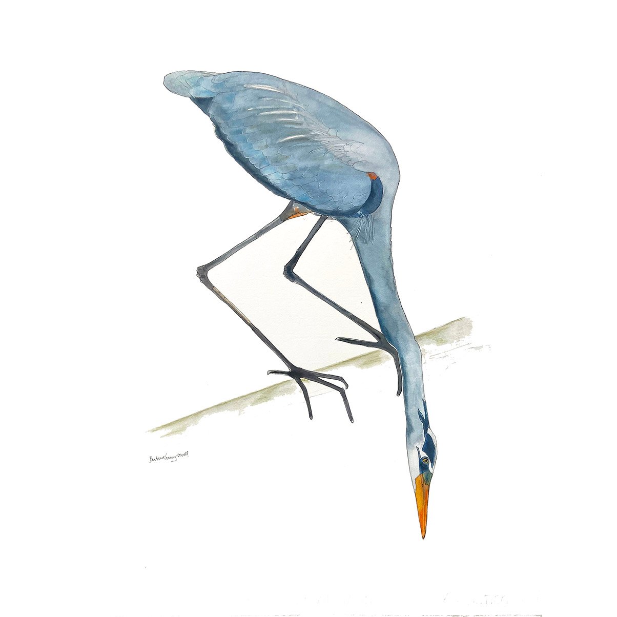 This is an original blue heron bird watercolor painting. Painted and signed by me BarbaraGurryRowell