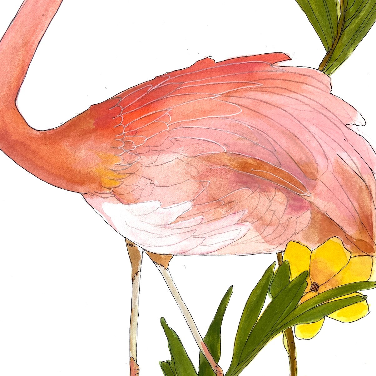 This is a nature-inspired original Pink Flamingo watercolor painting, Painted and signed by me, @BarbaraGurryRowell