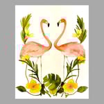 Pink Flamingos, retro fine art watercolor painting