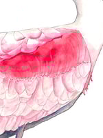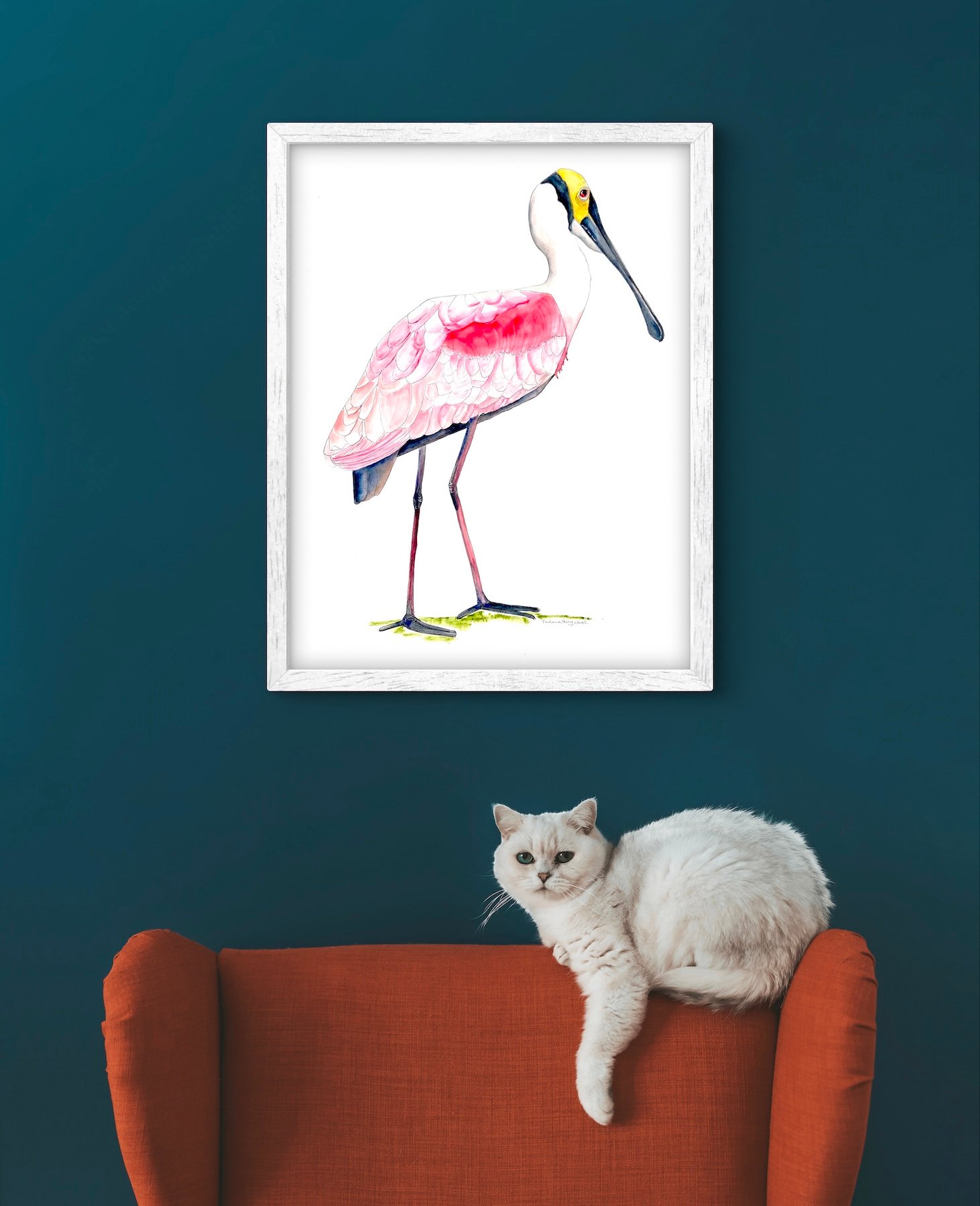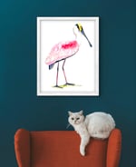 Original fine art watercolor, pen and ink, pink modern spoonbill painting. Painted by me, Barbara Gurry Rowell. Painted on Fabriano 300lb watercolor paper. Size 22x28, ships flat with protective padding and insured. Unframed, standard size for easy framing.